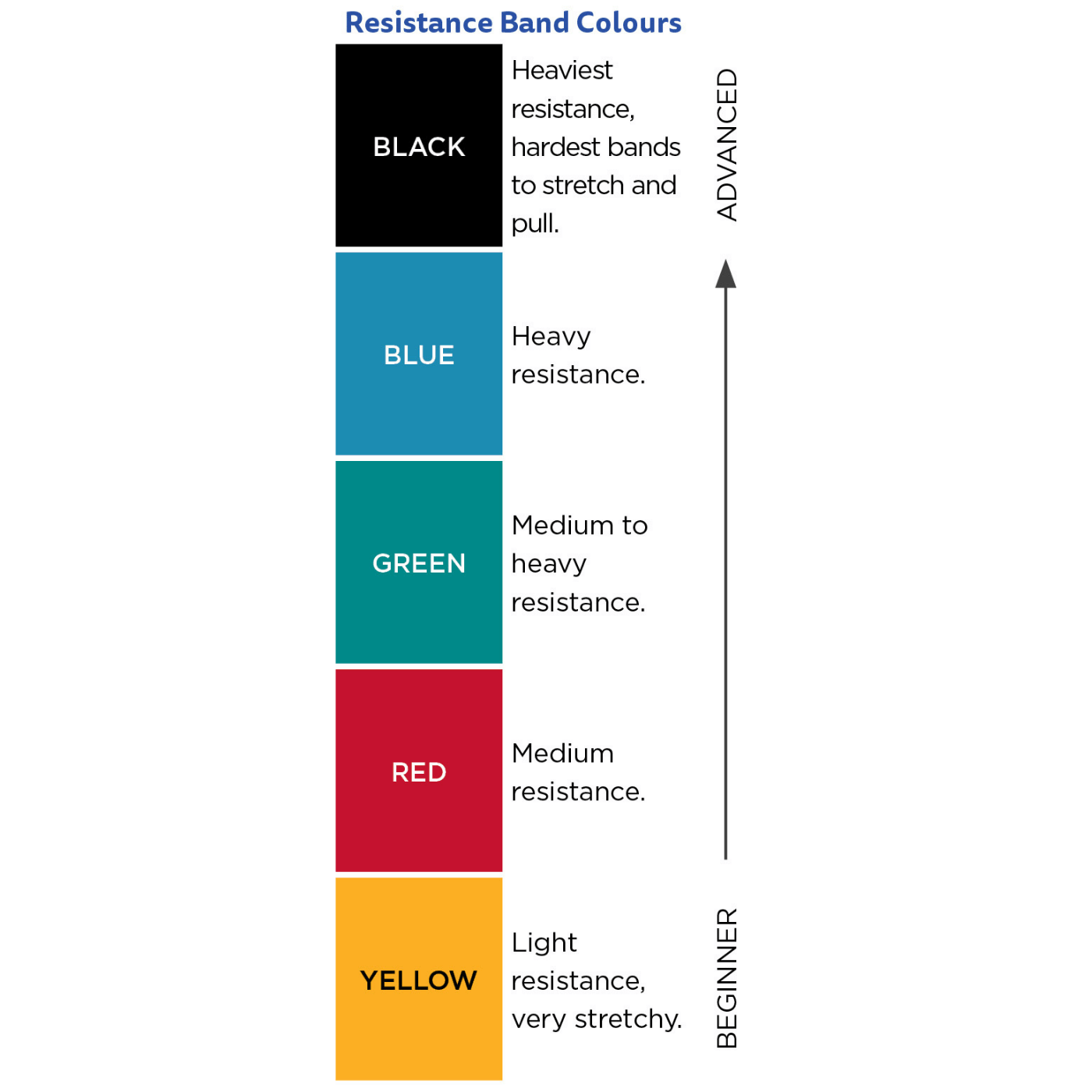 Take a look at the chart (see photos) to see the differences. The yellow grade is perfect for people undergoing rehabilitation after an injury or operation, or if you are looking at starting strength training for the first time many people have found that red or blue is good to start with. Of course, you can progress to a stronger grade as your level of strength increases.