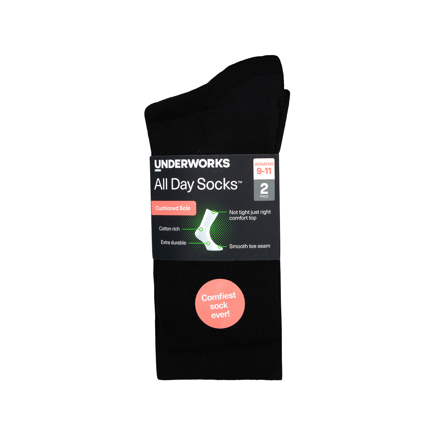 Underworks Women's All Day Socks Cushioned Crew 2pk