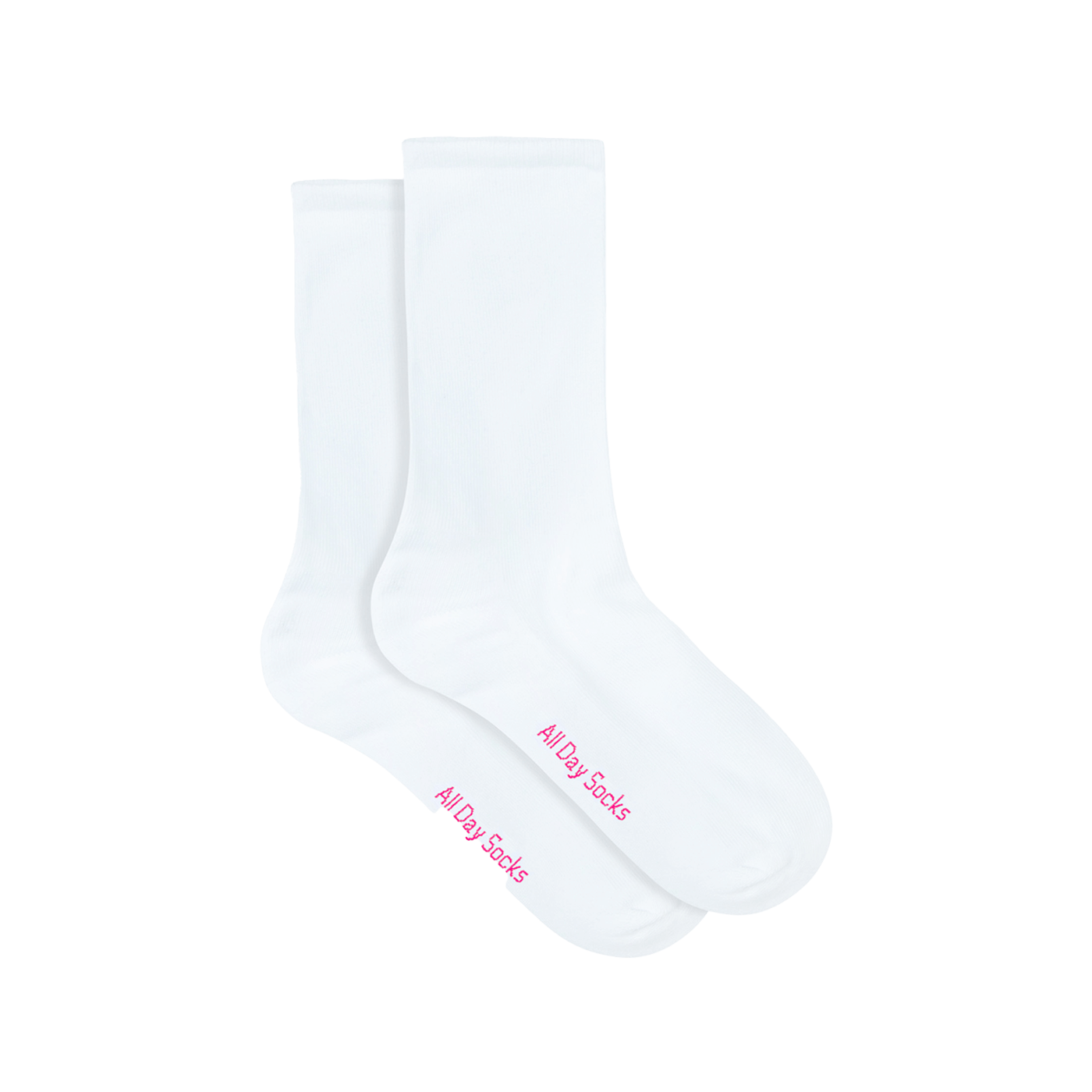If you are looking for a comfortable pair of socks that stay up without squeezing your legs then the Underworks Women's All Day Socks™ Cushioned Crew could be perfect for you. Extra comfy walking socks with a cushioned sole and an elastic-free top to promote healthy circulation. The ingenious design keeps the socks up all day long with a flat toe seam to prevent tenderness. They’re a great choice whether you’re on your feet all day or relaxing at home.