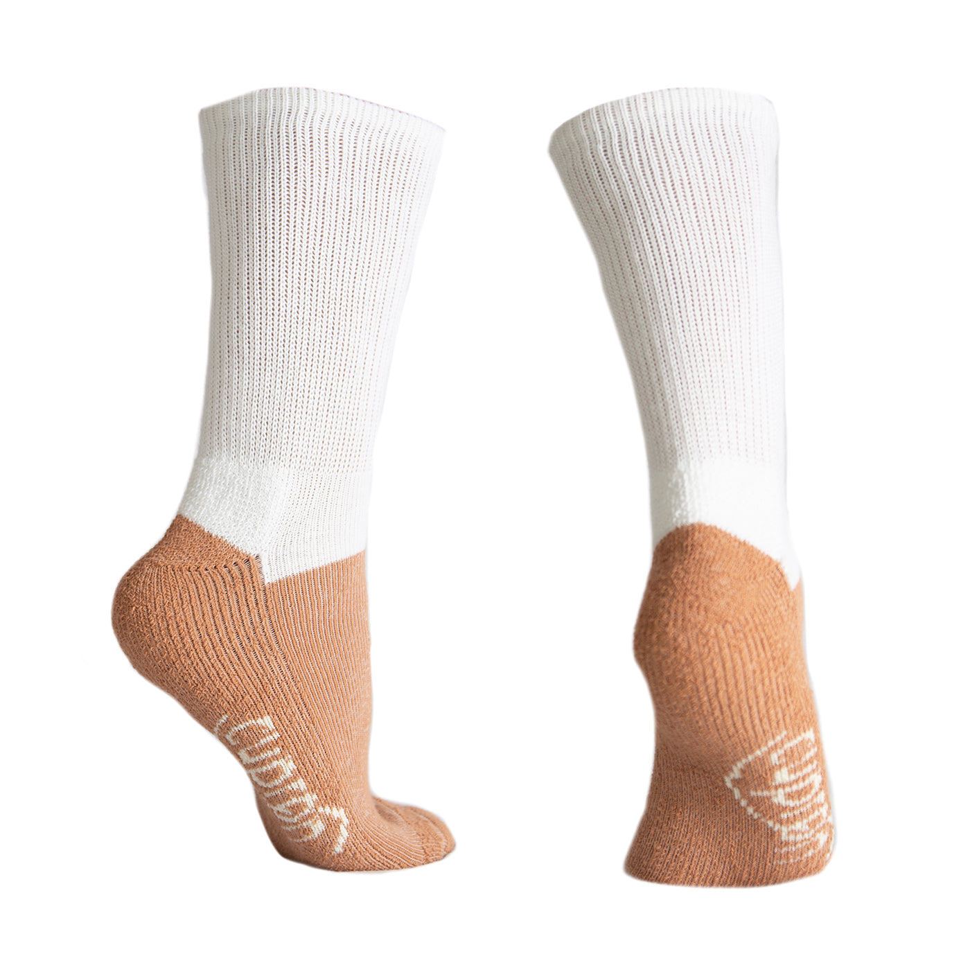 Glucology Full-Length Activity Socks for Men & Women are extra comfortable and perfect for boots, trainers or slippers; at work, on the go or at home. They are extra-thick and consist of even more Cupron copper yarn foot covering than the standard Glucology Classic Socks. Cupron is an Aussie patented copper yarn which works to improve the skin through up-regulating proteins and provide anti-microbial properties to help keep your feet clean and ward against bacteria. The Cupron is interwoven with a specific blend of hypoallergenic fabrics to draw sweat and moisture away from the skin. This helps to keep your feet feeling fresh, reduces odour and reduces friction that may cause blisters. Glucology Diabetes Copper Based Socks are scientifically created and are one of the leading sock options on the Australian market for innovation and effectiveness.
