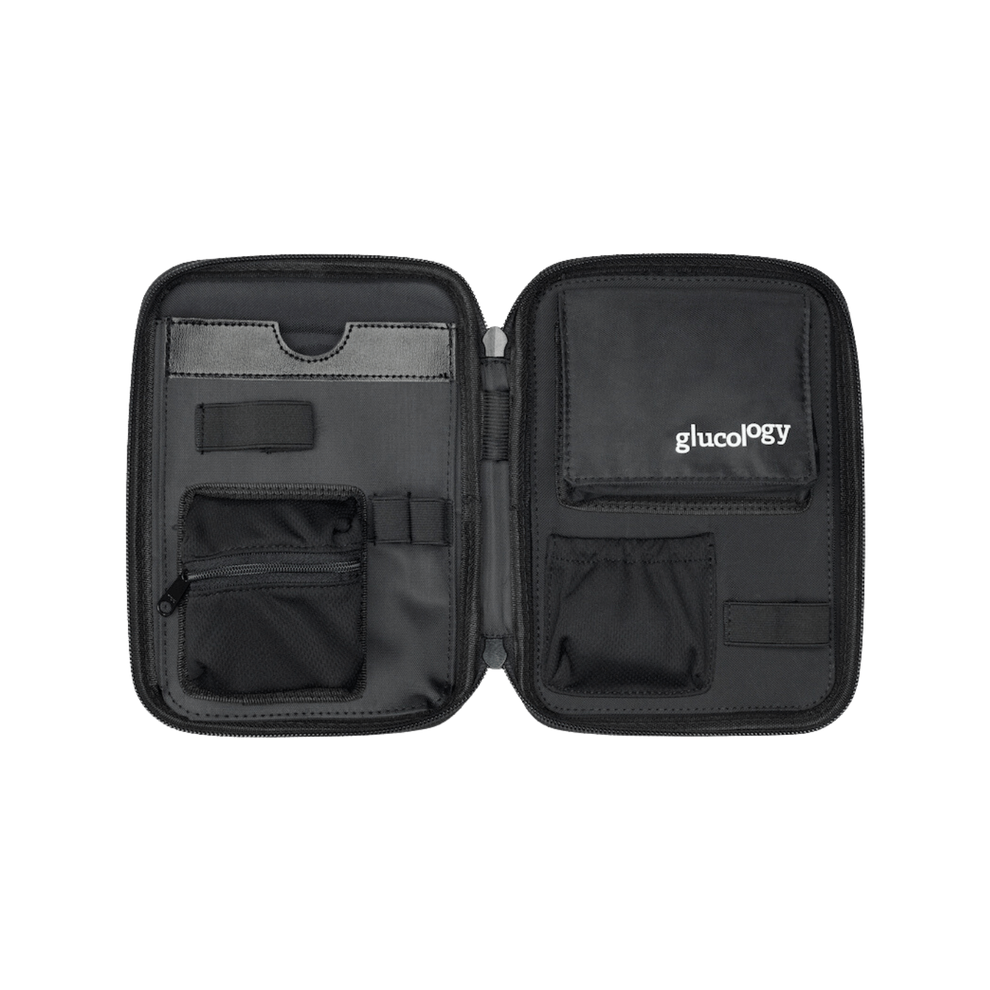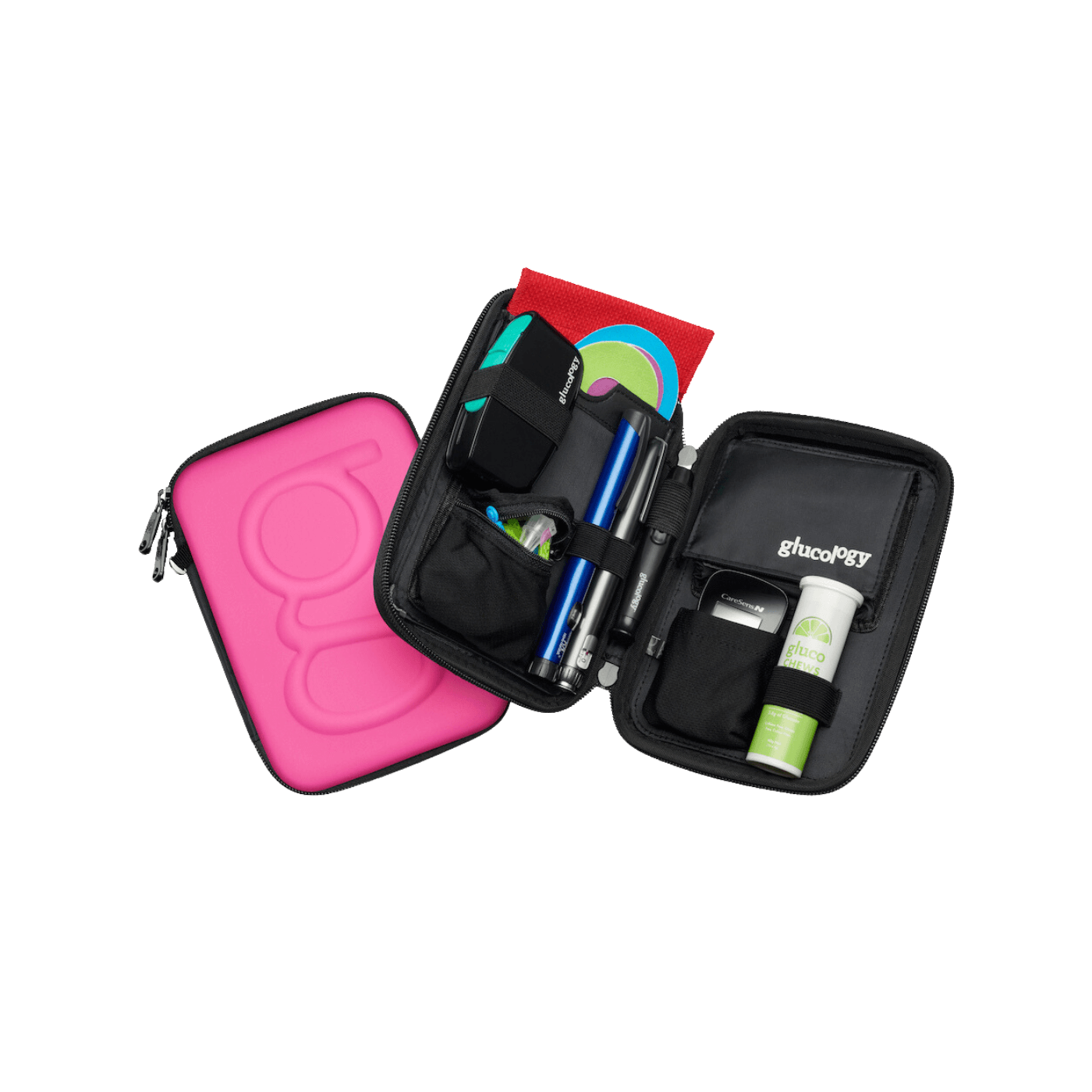 The Glucology Travel Case in the Classic size is well suited for travel, especially for daily use or short trips. The Glucology Travel Case Plus is also available for those looking for extra storage space.