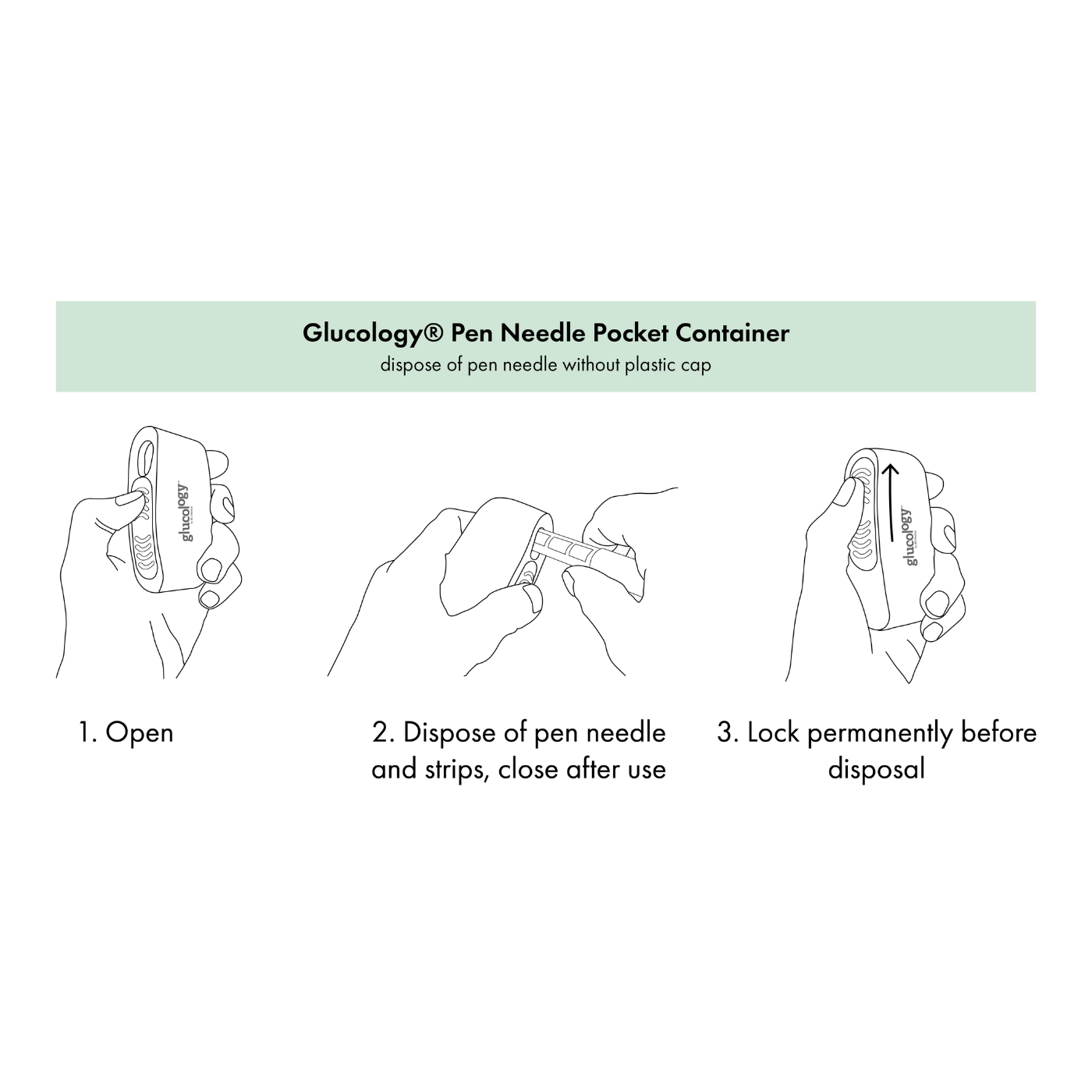 Conveniently-sized and easy to use, the Glucology Pen Needle Pocket Container is built to safely dispose of used insulin pen needle tips and lancets. Small enough to fit into your pocket or bag, these mini sharps bins are perfect for everyday use at work, school, or when travelling. The unique design keeps needles securely locked inside, and features a built in needle removal port to prevent injury. It's suitable for all pen needle sizes.