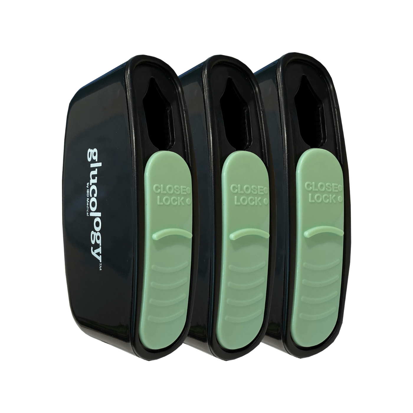 - Can hold 25 pen needle tips, plus used lancets and test strips