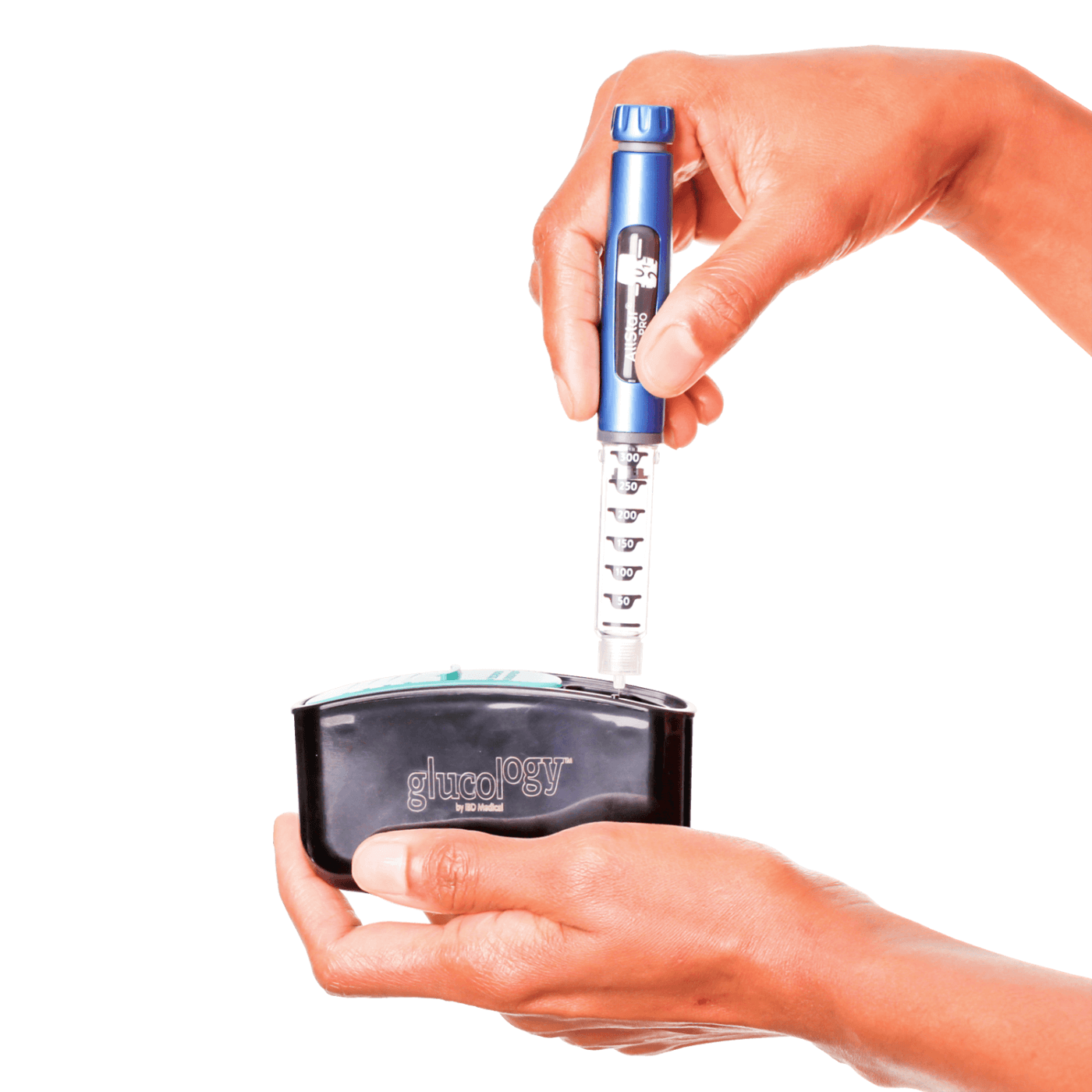 - Insert your pen needle tip into the opening, then twist clockwise to securely release the needle inside. Your fingers never come in contact with the sharp.