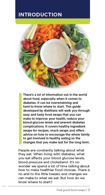 Feel Good Food Swaps is full of tips and information about how to make small, sustainable healthy changes to what you eat. Healthy eating when you have diabetes can be a minefield, and this guide aims to simplify things so you can go away with a list of small actions you can take to eat healthier and better manage your diabetes.