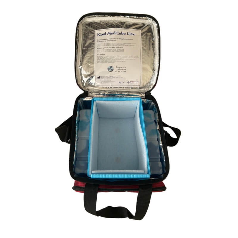 The Ultra Cooler Box holds up to 40 injection pens or syringes. and comes with 3 MedActiv gel packs. The padded isothermic bag will keep the MedActiv gel packs separate to your sensitive medicines.
