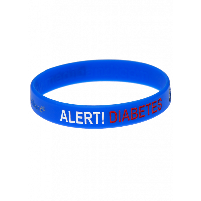 Silicone medical ID wristband for people that are insulin dependent. Ideal for active people, or those that want something more subdued than a metal bracelet.