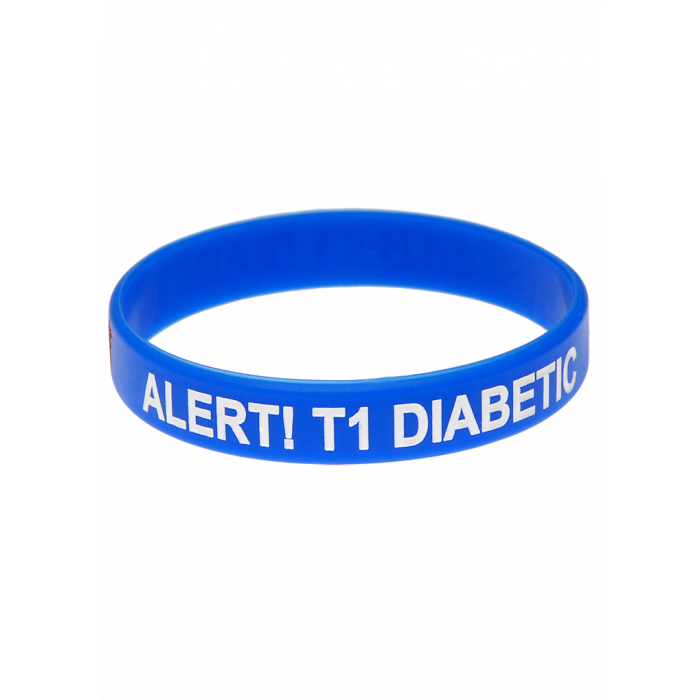 Silicone medical ID wristband for people living with Type 1 diabetes. Ideal for active people, or those that want something more subdued than a metal bracelet.