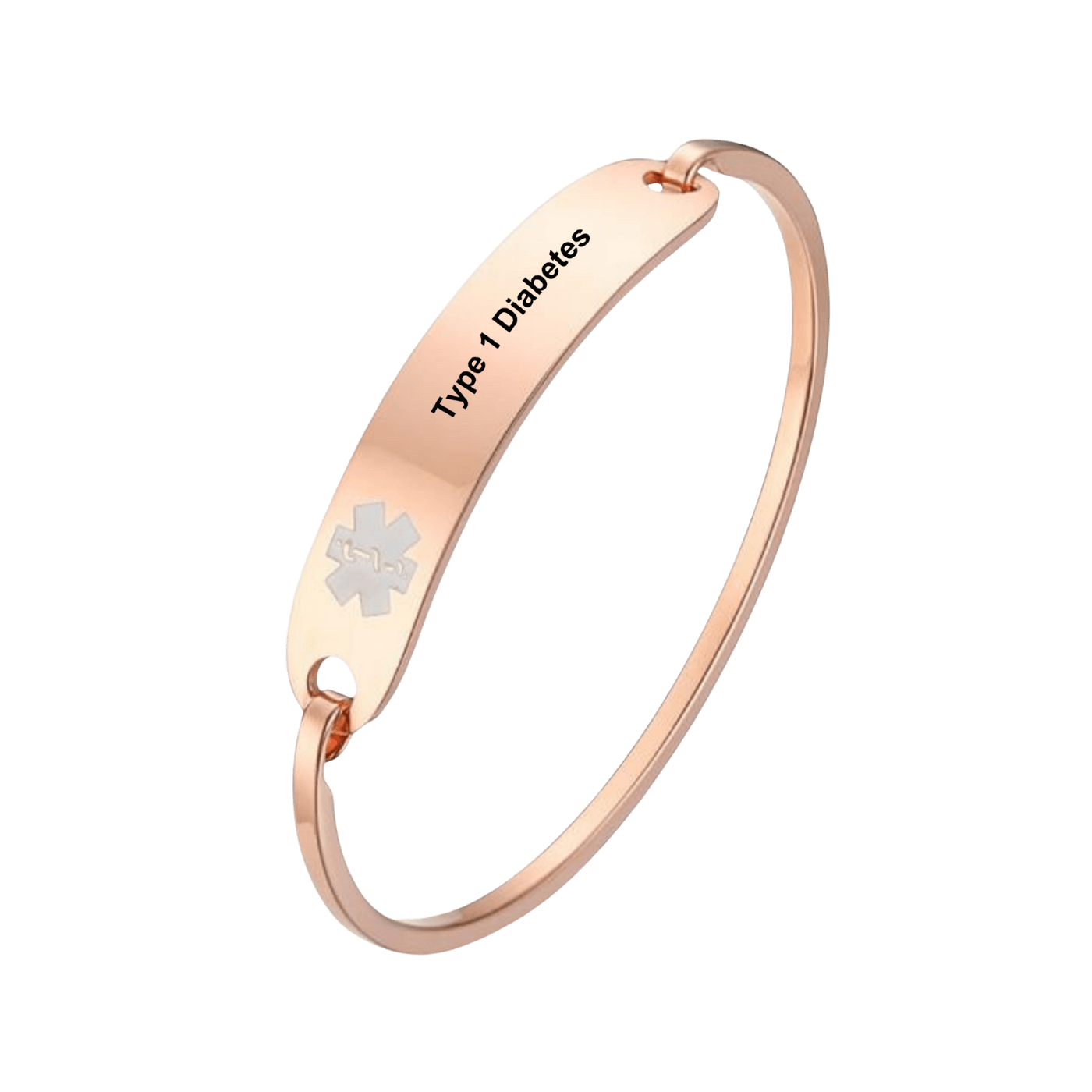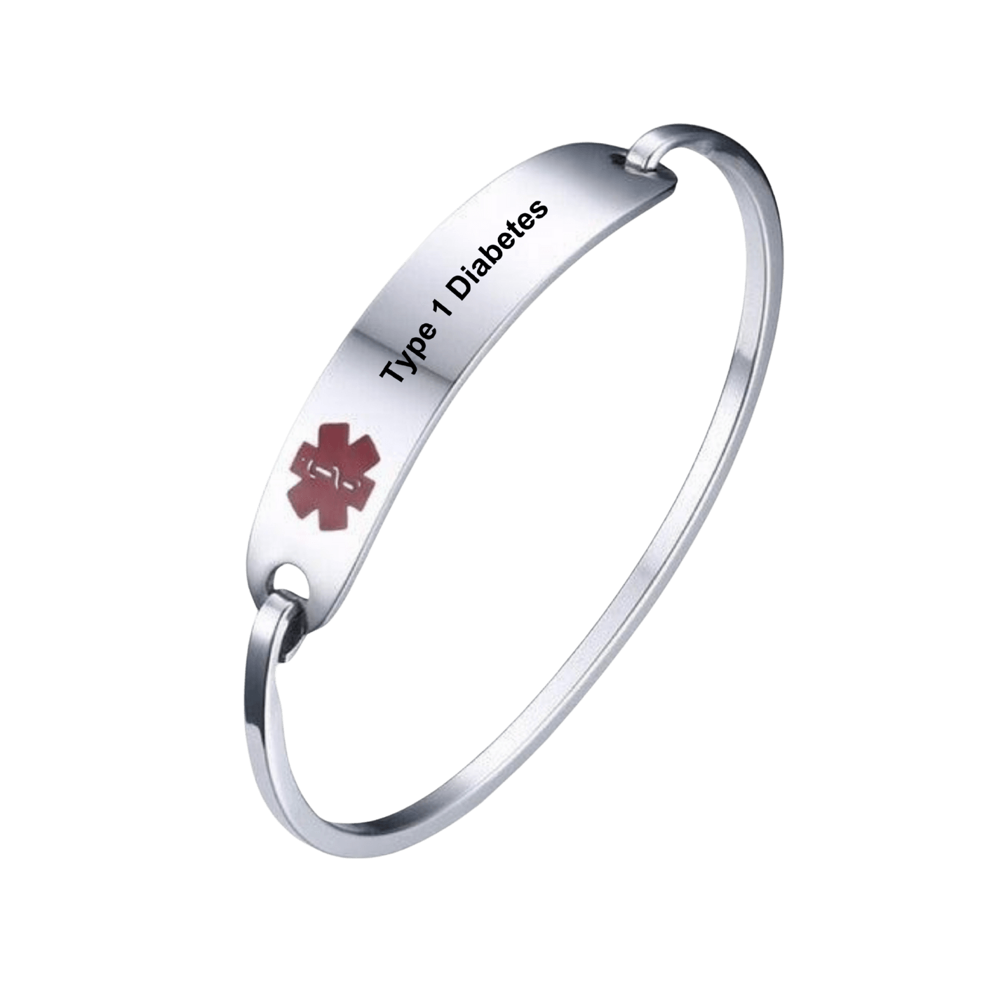 This medi-alert bracelet is engraved with "Type 1 Diabetes" and can provide critical information to first responders and health professionals in an emergency, to ensure they can provide the appropriate care.