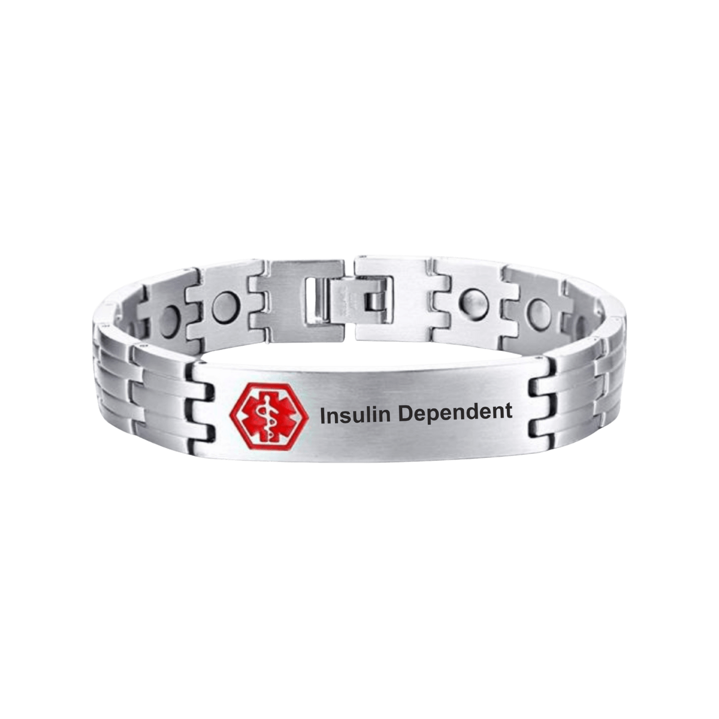 Medical ID Stainless Steel Linked Bracelet Insulin Dependent