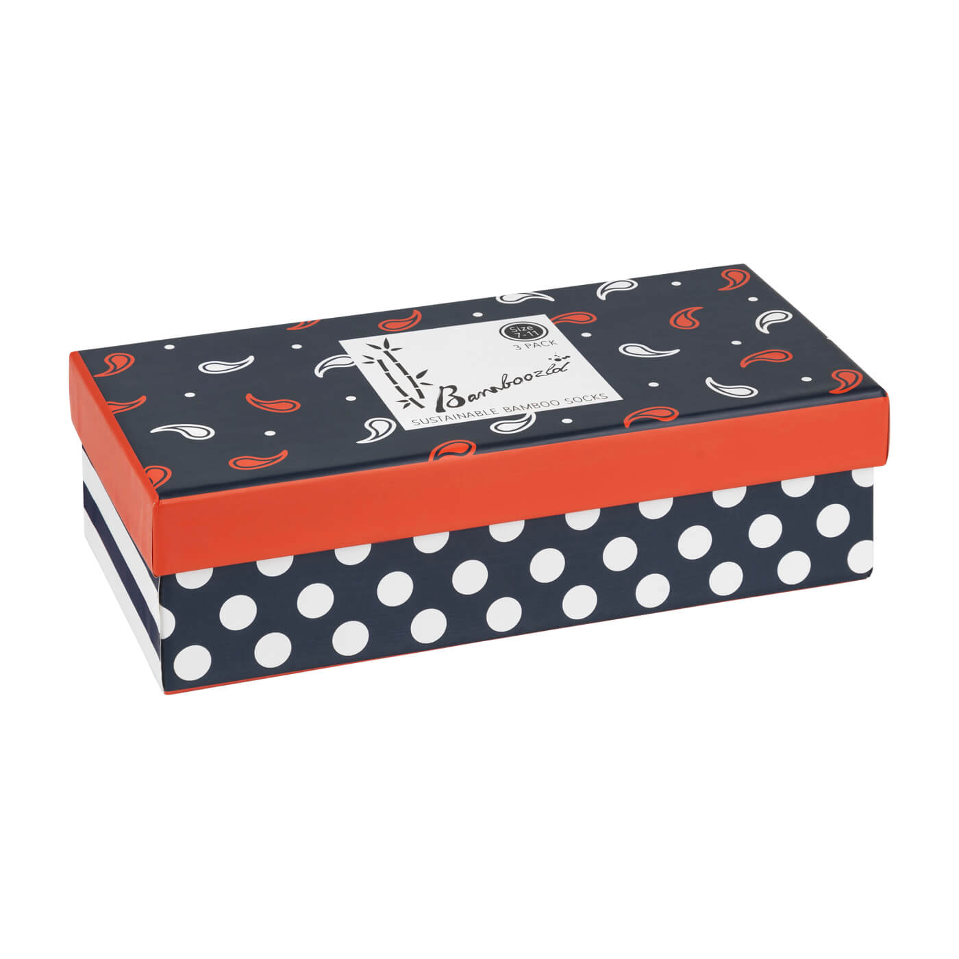 Spots and Specks Gift Box is the perfect gift for someone special or treat yourself, featuring three pairs of crew socks with spots, stripes and paisley designs. Bamboozld Gift Boxes pack a playful punch with their vibrant collection of quirky bamboo socks. Made from sustainable Bamboo fibre and designed for all-day comfort, fun for your feet and great for our environment.