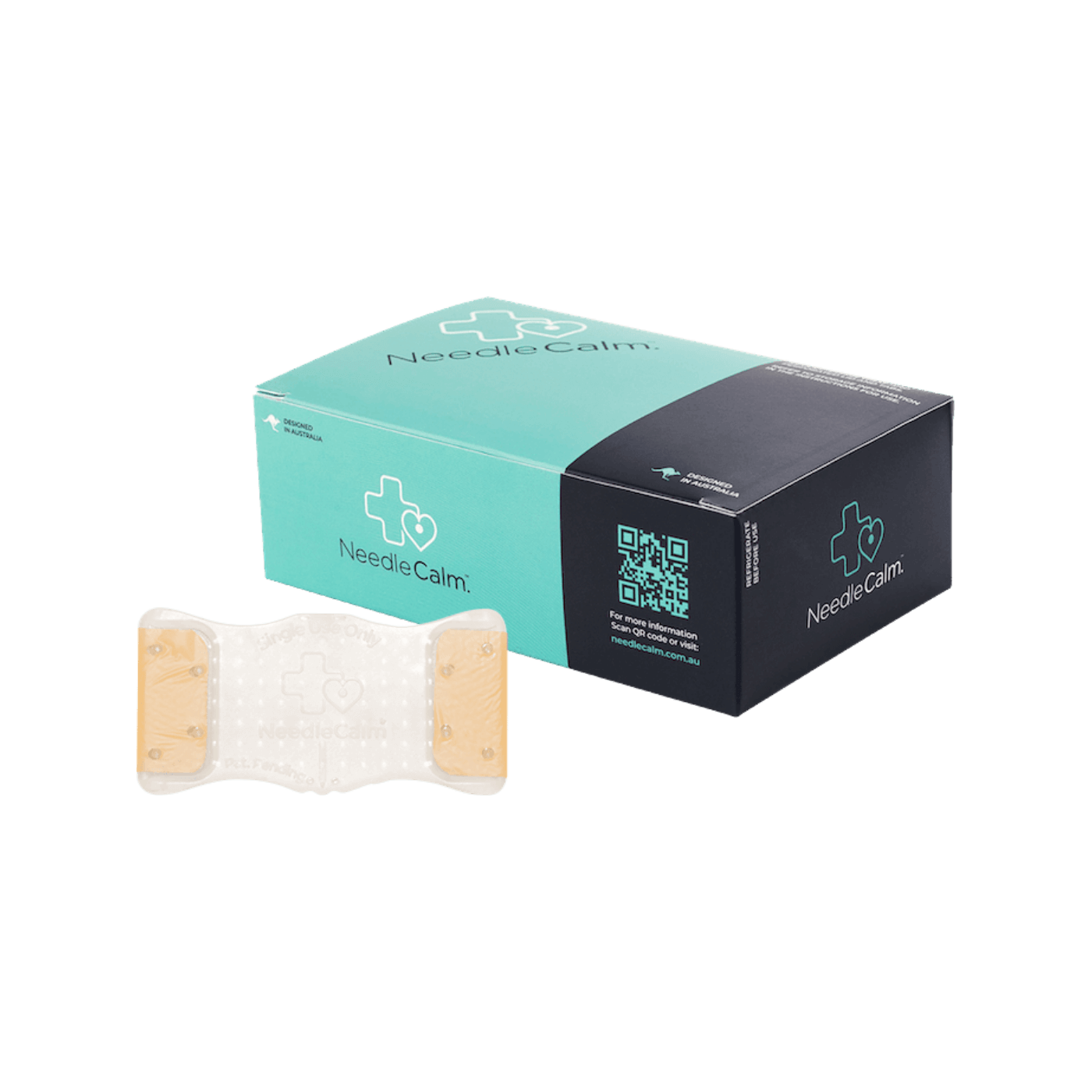 These adhesive patches combine a cool temperature and specific texture stimuli, creating a barrier between your nerves and the needle. After refrigerating the NeedleCalm for the recommended amount of time, apply the adhesive pad directly to the skin close to the needle injection zone moments before the needle procedure.