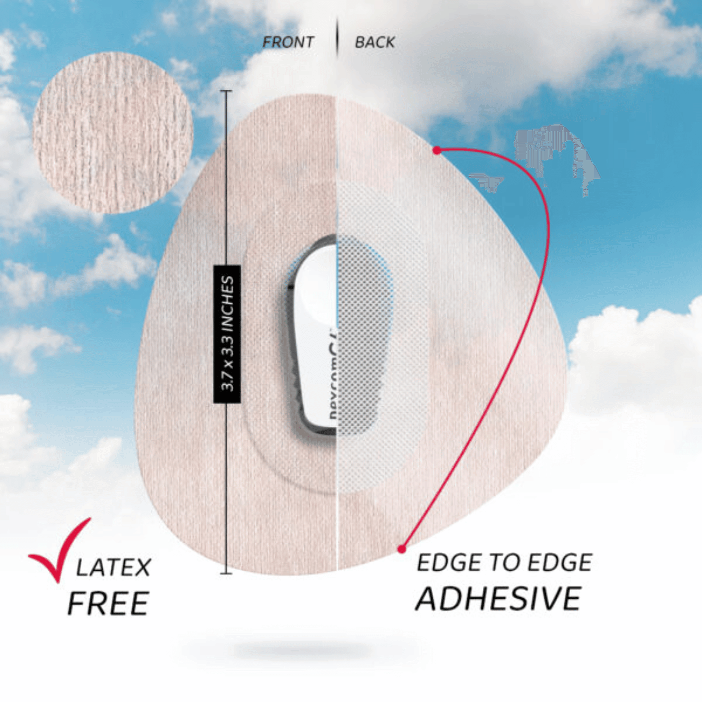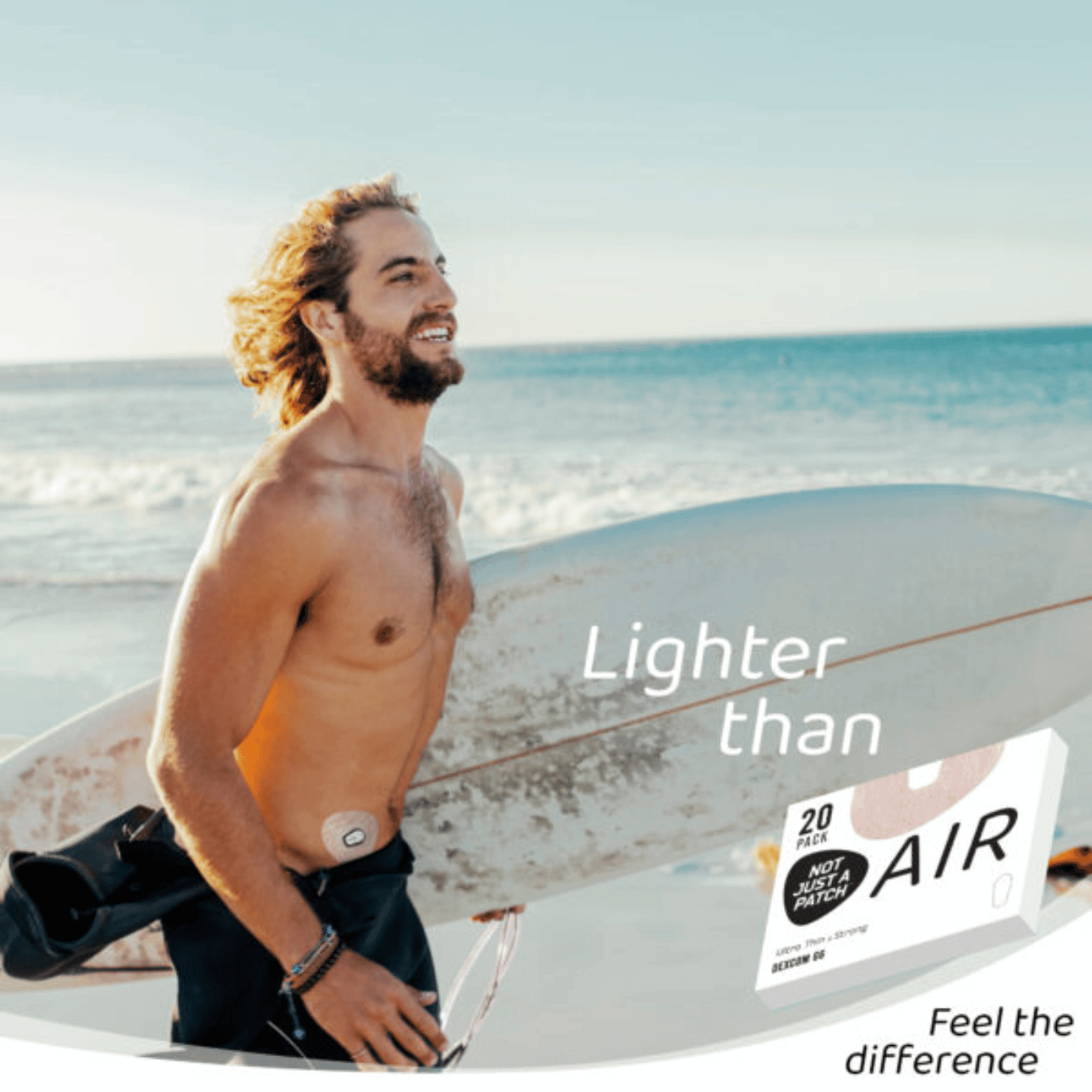 Don’t worry that the light and airy design means it’s not going to work when the going gets tough. Air will stay fixed to your skin for 10-14 days thanks to edge-to-edge adhesive. These patches are designed by a T1D surfer who knows how important it is to keep your monitor safe in all conditions.