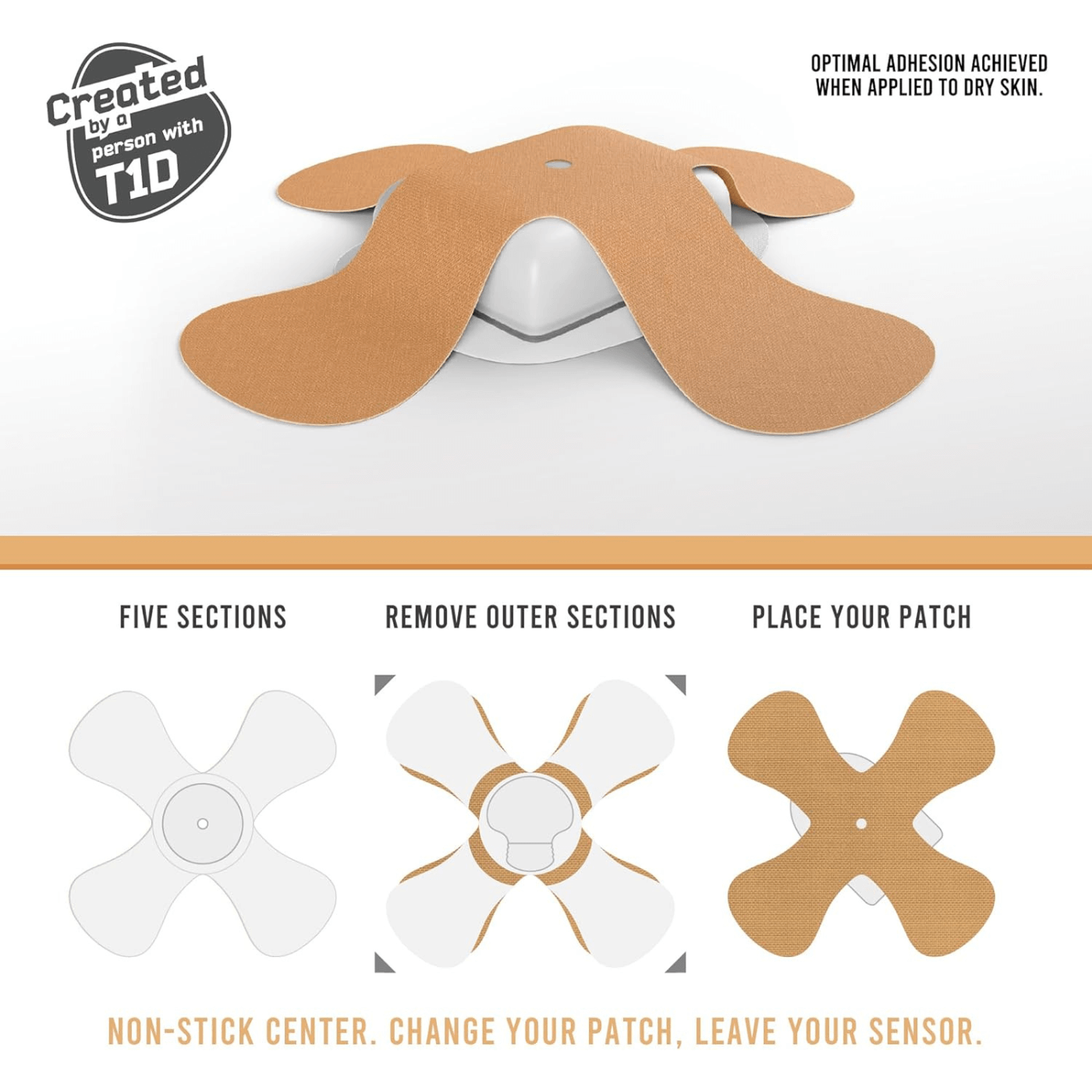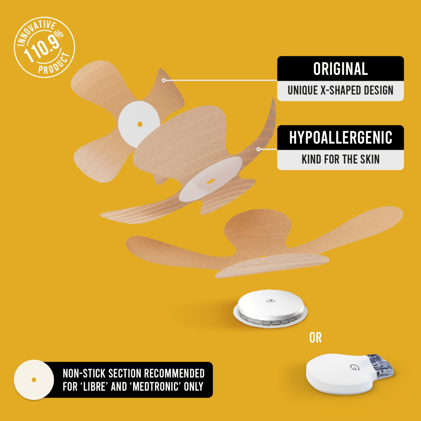 The CGM X-Patches from Not Just a Patch are designed to help protect and keep your CGM sensor safe and secure. These CGM adhesive patches suit any activity, sport, and fashion choice, and are specially designed to keep your CGM sensor safe for more than 10 days. The unique X-shaped design means they're compatible with Freestyle Libre, Medtronic Guardian, Dexcom, and Omnipod sensors. So comfortable you won’t even know it’s there!