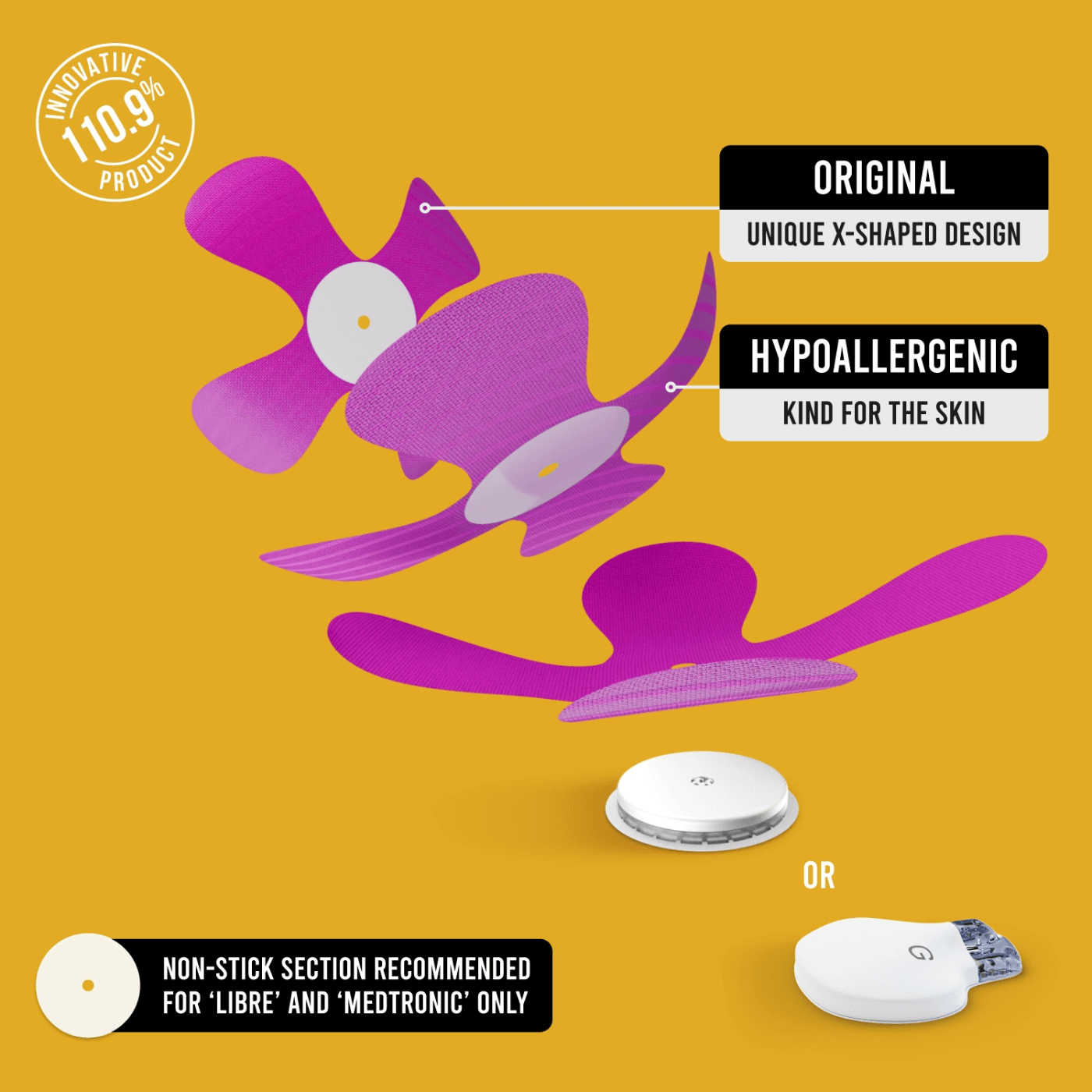 The CGM X-Patches from Not Just a Patch are designed to help protect and keep your CGM sensor safe and secure. These CGM adhesive patches suit any activity, sport, and fashion choice, and are specially designed to keep your CGM sensor safe for more than 10 days. The unique X-shaped design means they're compatible with Freestyle Libre, Medtronic Guardian, Dexcom, and Omnipod sensors. So comfortable you won’t even know it’s there!