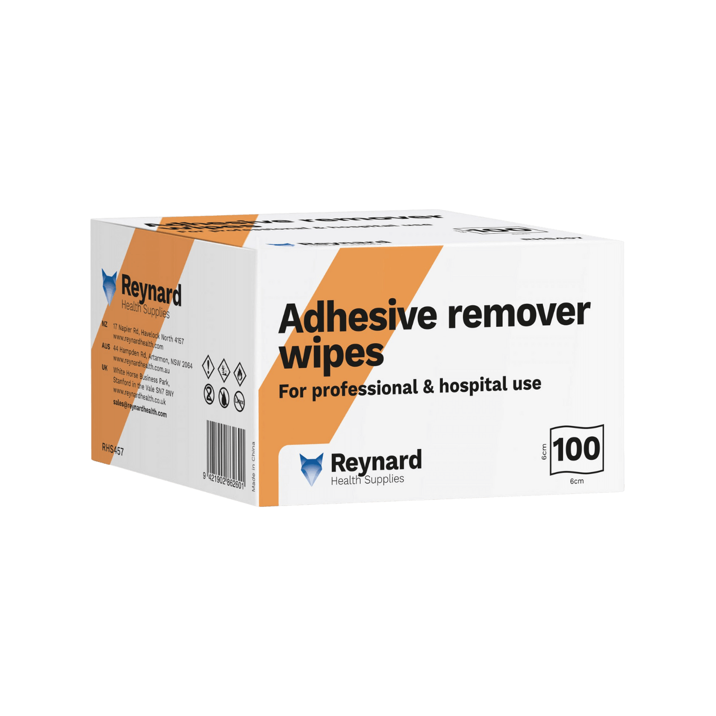 Reynard Adhesive Remover Wipes effectively remove residue from adhesive tapes and dressings.