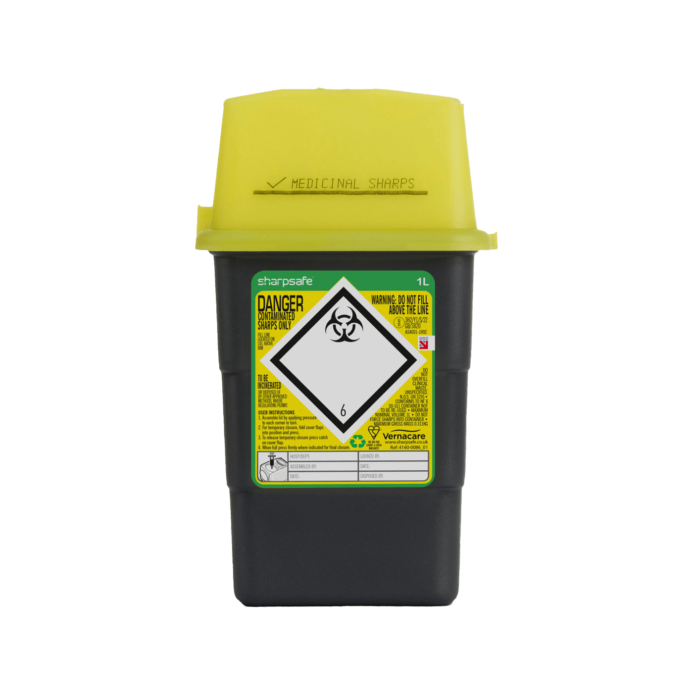 Sharpsafe 1 Litre Yellow Lid Recycled Polymer Container