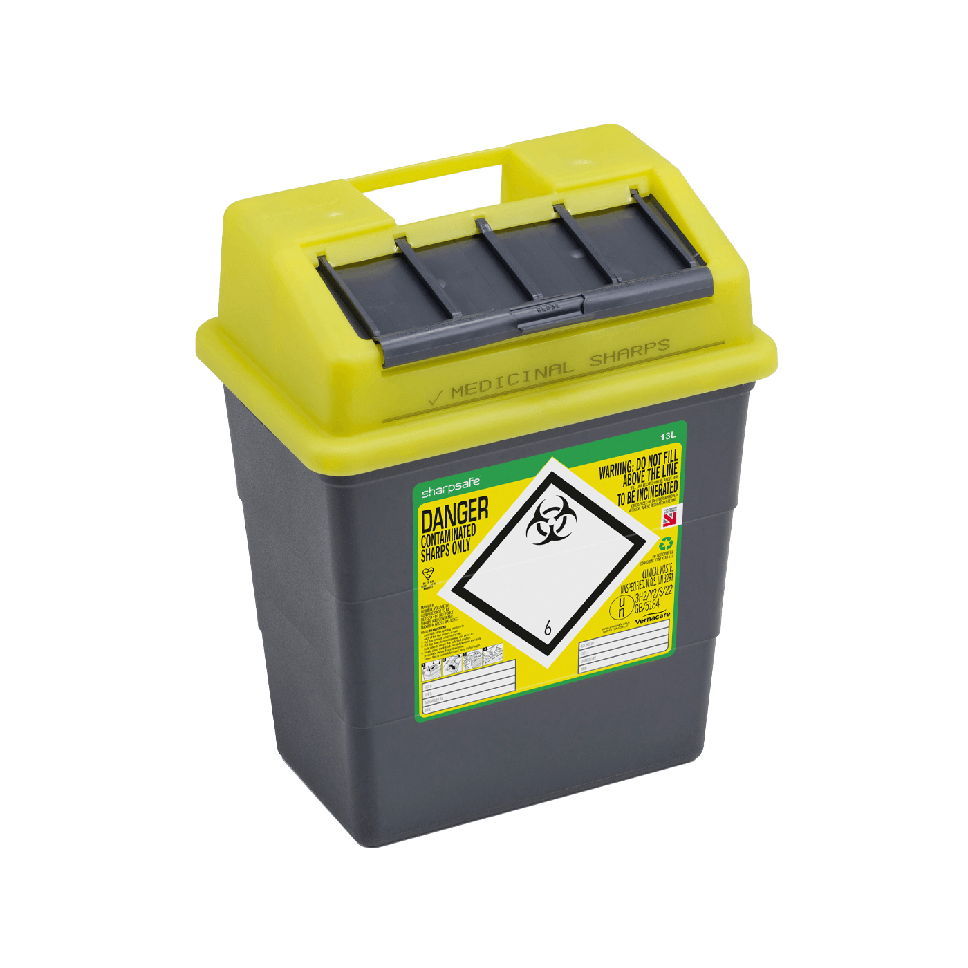 Sharpsafe 13 Litre Yellow Lid Recycled Polymer Container