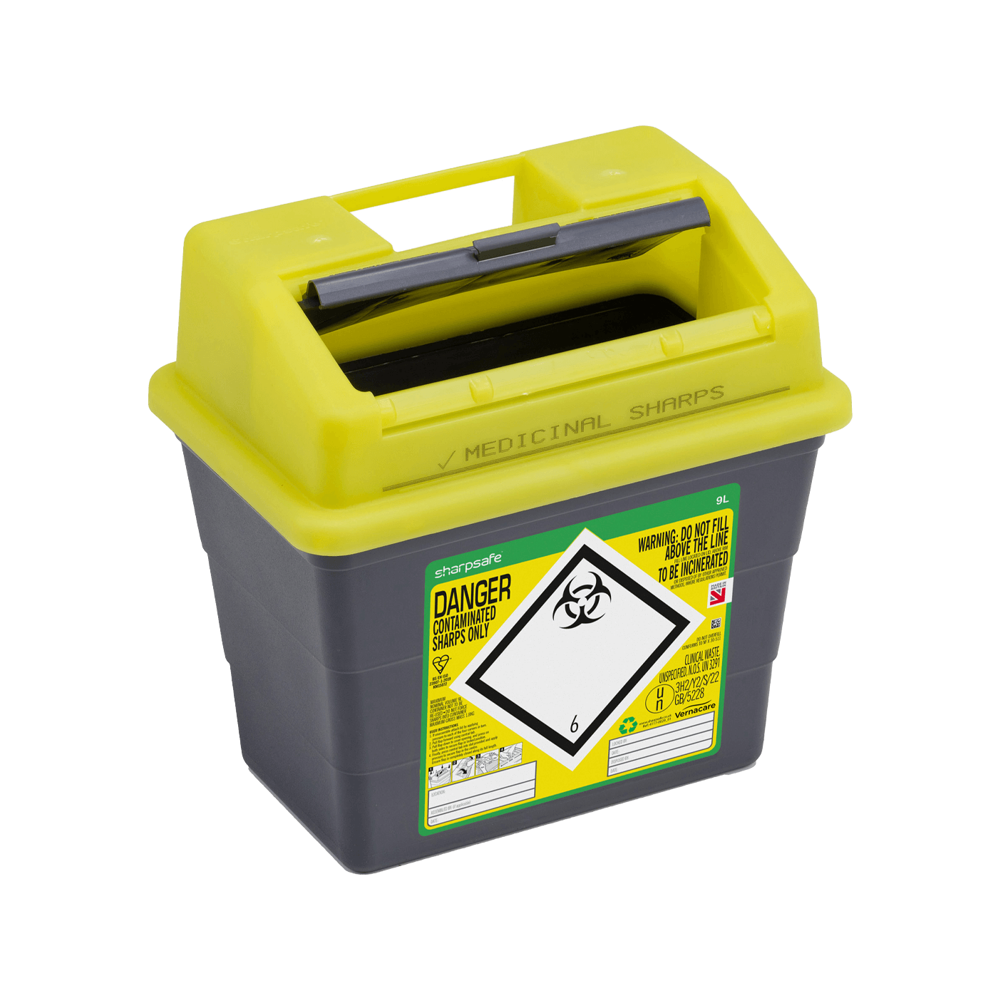 Sharpsafe 9 Litre Yellow Lid Recycled Polymer Container