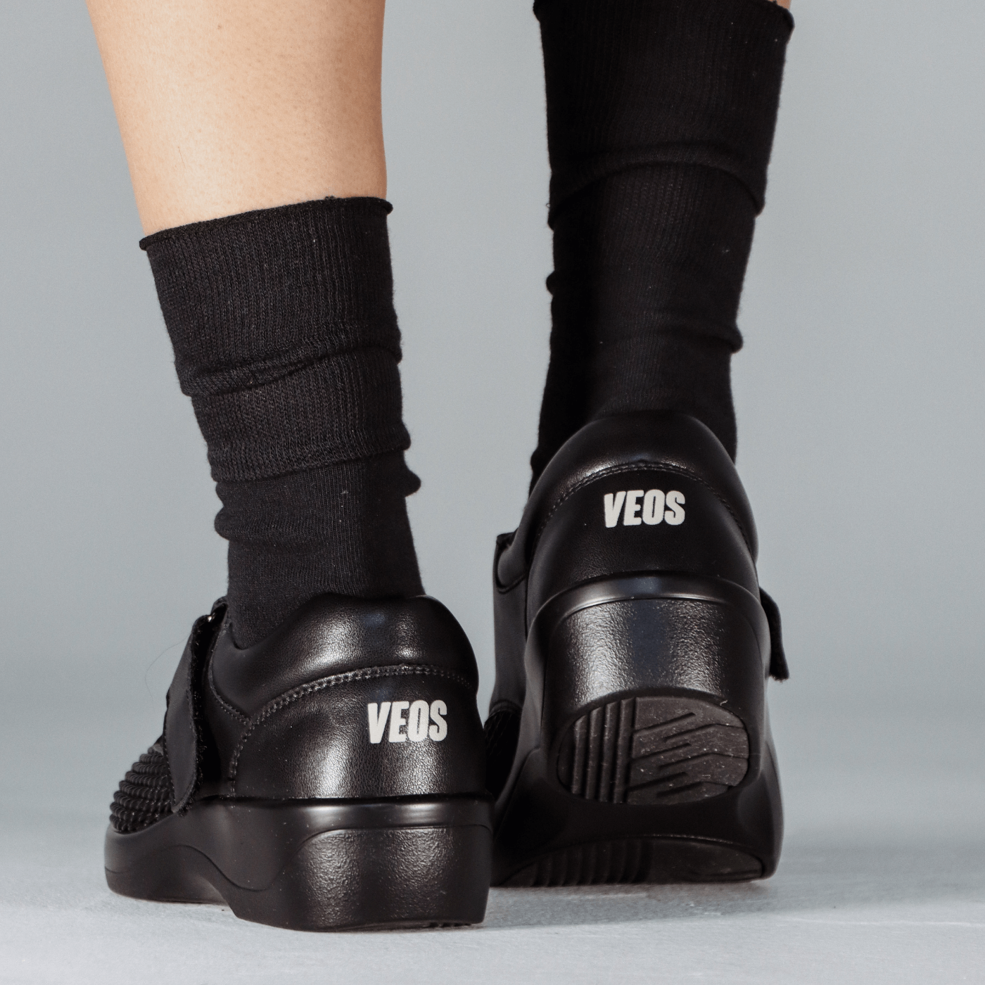 Sole safety is key. VEOS Neos are equipped with slip-resistant soles designed to provide excellent traction on a variety of surfaces. The soles are carefully engineered to offer stability, without being so grippy that they catch or cause tripping hazards. They allow for safe movement while minimising the risk of slipping, giving you the confidence to move naturally and securely.